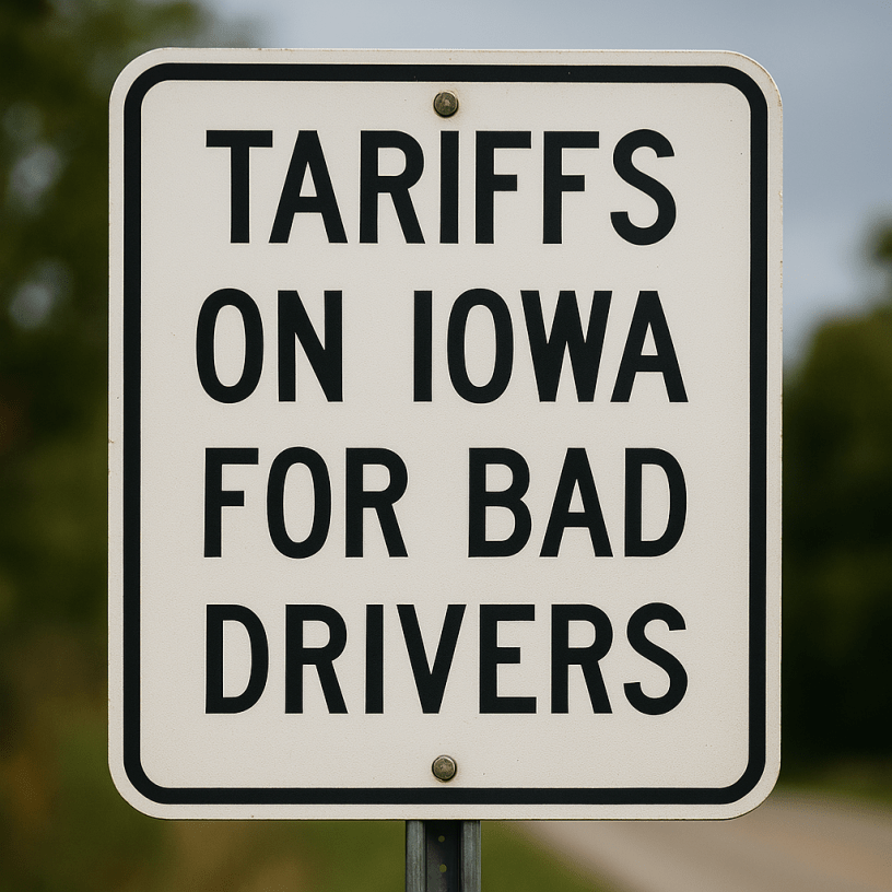 “The other day I saw an Iowa driver stop at a traffic cone and I think they were waiting for it to turn green or something? I don’t even know any more. Iowa drivers are the most confusing creature on Earth and I’m glad they’re going to get tariffed,” said another citizen we spoke with.